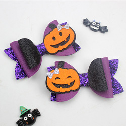 Épingle à cheveux toile d'araignée citrouille d'automne européenne américaine avec nœud feuille d'érable scintillant transfrontalier Nouveau pour les pinces à cheveux d'Halloween