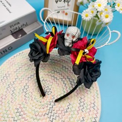 Style Européen Américain Halloween Crâne Bandeau Jour Mort Chapeaux avec Fleur Artificielle Noir Bandeau Fabrication En Gros