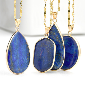 Collier en or haut de gamme pour femmes avec goutte d'eau exagérée Lapis Lazuli pendentif Non-Fading bijoux en alliage de luxe en gros
